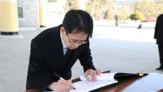 (대전=뉴스1) 이동원 기자 = 백승보 조달청장이 7일 국립대전현충원에서 참배 후 방명록에 “대한민국의 대도약과 국민들의 행복- 2026-01-07 16:27
