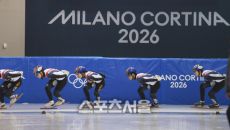 쇼트트랙 선수들이 7일 진천 국가대표선수촌에서 훈련을 하고 있다. 2026. 1. 7. 진천 | 최승섭기자 thunder@sp- 2026-01-07 16:14