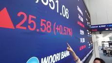 (서울=뉴스1) 김민지 기자 = 7일 오후 서울 중구 우리은행 본점 딜링룸 전광판에 종가가 나오고 있다. 이날 코스피는 전 거- 2026-01-07 16:13