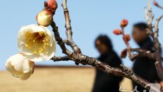 (부산=뉴스1) 윤일지 기자 = 7일 부산 동래구 복천동의 한 매화나무에 봄의 전령사 매화가 꽃망울을 터뜨려 눈길을 끌고 있다- 2026-01-07 15:17
