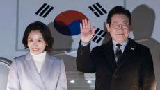 중국 방문 공식일정을 마친 이재명 대통령과 김혜경 여사가 7일 상하이 푸둥 공항 한국행 공군 1호기에서 환송객에게 인사하고 있- 2026-01-07 21:09