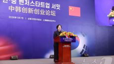 (서울=뉴스1) = 한성숙 중소벤처기업부 장관이 7일(현지시간) 중국 상하이에서 열린 '한·중 투자 컨퍼런스'에서 인사말을 하- 2026-01-07 14:48
