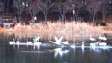 하얀 날갯짓으로 겨울 알리다…울진 연호공원에 고니 떼 장관