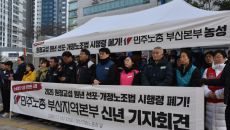 민주노총 부산본부가 '교섭창구 단일화 원칙'이 담긴 노란봉투법(노조법 2·3조) 시행령 개정안 폐기를 촉구하며 철야 노숙농성에- 2026-01-07 14:45