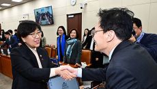 아동수당법 복지위 통과...박주민 위원장과 새해 인사 나누는 정은경 장관 [TF사진관]