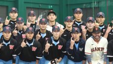 [포토]후배들과 기념 촬영하는 이정후와 토니 비텔로 감독