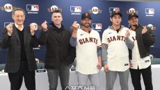 미국 메이저리그 샌프란시스코 자이언츠의 래리 베어 CEO, 버스터 포지 사장, 토니 비텔로 감독, 이정후, 윌리 아다메스(왼쪽- 2026-01-07 14:22