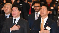 [포토] 서울시 신년인사회 국민의례하는 오세훈-최태원