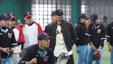 고등학교 선수들 훈련 지켜보는 윌리 아다메스