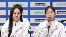 (진천=뉴스1) 김성진 기자 = 스피드스케이팅 김민선(오른쪽)이 7일 충북 진천선수촌 챔피언하우스에서 열린 2026 밀라노코르- 2026-01-07 13:53