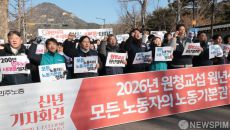 [서울=뉴스핌] 이길동 기자 = 민주노총 조합원들이 7일 서울 종로구 청와대 앞에서 열린 '원청교섭 원년 선포! 모든 노동자의- 2026-01-07 13:26