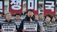 [서울=뉴스핌] 이길동 기자 = 양경수 민주노총 위원장이 7일 서울 종로구 주한 미국 대사관 앞에서 열린 '자원 강탈과 정권- 2026-01-07 13:25