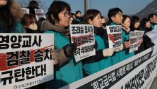 [서울=뉴스핌] 이길동 기자 = 전국교직원노동조합 관계자들이 7일 서울 종로구 정부서울청사 앞에서 '학교급식법 시행령' 개정- 2026-01-07 13:23