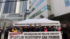 [부산=뉴시스]진민현 기자 = 민주노총 부산본부가 개정된 노조법 시행령 폐기를 촉구하며 신년 기자회견을 열고 철야 노숙농성에- 2026-01-07 12:55