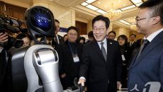 휴머노이드 로봇과 악수하는 이재명 대통령
