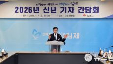 [김제=뉴스핌] 이백수 기자 = 정성주 김제시장은 7일 기자회견을 열고 2026년 시정 슬로건을 '지평선 너머 새만금까지, 비- 2026-01-07 12:34