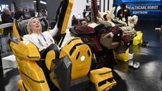 바디프랜드 헬스케어로봇 체험하는 관람객들