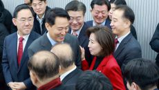 고개숙여 인사하는 오세훈과 박수 보내는 나경원