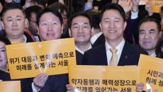 '2026년 서울시 신년인사회' 참석 퍼포먼스하는 오세훈 서울시장과 최태원 서울상의 회장