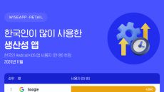 한국인이 가장 많이 사용하는 생산성 애플리케이션(앱) 1위는 구글인 것으로 나타났다. 실시간 앱·결제 데이터 기반 시장·경쟁사- 2026-01-07 11:06