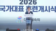 최휘영 문화체육부장관이 7일 진천 국가대표선수촌에서 열린 2026 국가대표선수단 훈련개시식에서 격려사를 하고 있다. 2026.- 2026-01-07 11:04