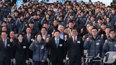 (진천=뉴스1) 김성진 기자 = 최휘영 문화체육관광부 장관, 유승민 대한체육회장, 쇼트트랙 최민정을 비롯한 선수단이 7일 충북- 2026-01-07 11:04