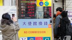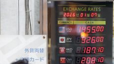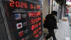 (서울=뉴스1) 안은나 기자 = 7일 서울 중구 명동의 환전소에 앞에서 관광객이 환율 시황을 스마트폰에 담고 있다. 한국은행- 2026-01-07 11:00