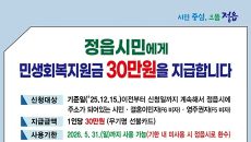 정읍시, 오는 19일부터 모든 시민에 민생회복지원금 지급