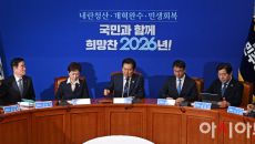 아시아투데이 송의주 기자 = 정청래 더불어민주당 대표(가운데)가 12일 국회에서 열린 최고위원회의에서 의사봉을 두드리고 있다.- 2026-01-12 10:02