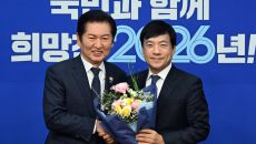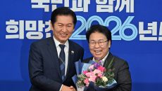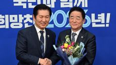 아시아투데이 송의주 기자 = 정청래 더불어민주당 대표(왼쪽)가 12일 국회에서 열린 최고위원회의에서 문정복 신임 최고위원에게- 2026-01-12 10:02