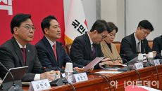 아시아투데이 송의주 기자 = 장동혁 국민의힘 대표(왼쪽에서 두번째)가 12일 국회에서 열린 최고위원회의에서 발언을 하고 있다.- 23시간전