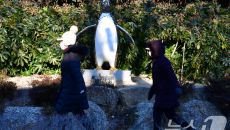 (포항=뉴스1) 최창호 기자 = 12일 경북 포항시 남구 대잠동 철길숲에서 두터운 옷차림의 시민이 펭귄 조형물 앞으로 걸어가고- 23시간전