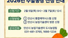 [윤은중 기자] (안산=국제뉴스) 윤은중 기자 = 안산시는 2월 5일부터 사흘간 주말농장 신청 및 접수를 받는다고 12일 밝혔- 2026-01-12 09:09