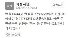 경기도 화성시 반정동에서 화재가 발생했다. 12일 화성시에 따르면 "이날 오전 4시 44분경 반정동의 한 상가에서 화재가 발생- 2026-01-12 06:29