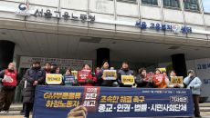 [서울=뉴시스] 조성하 권민지 수습 기자 = 한국GM 세종물류센터 하청노동자 120명 집단해고를 둘러싸고 시민사회단체와 한국G- 2026-01-12 17:38