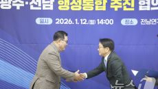 (나주=뉴스1) 김태성 기자 = 광주 전남 행정통합 추진 협의체 회의가 12일 전남 나주 동신대 전남연구원 회의실에서 열려 강- 2026-01-12 17:34