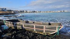 (제주=뉴스1) 홍수영 기자 = 제주 해안가에서 한자가 적힌 정체 불명의 배가 발견됐다. 12일 제주해양경찰서에 따르면 이날- 2026-01-12 17:24