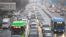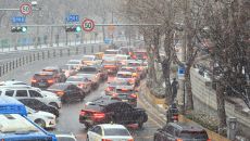 눈길로 정체되는 도로