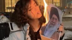 이란에서 반정부 시위가 확산하는 가운데 이란 여성들이 최고 지도자 아야톨라 알리 하메네이의 사진에 불을 붙여 담배를 피우는 방- 2026-01-12 16:58