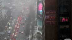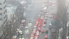 눈 내리는 퇴근길 정체 빚는 서울 도심