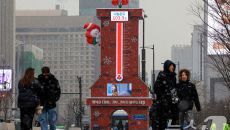 (서울=뉴스1) 이호윤 기자 = 12일 서울 종로구 광화문광장에서 외국인 관광객들이 사랑의 온도탑을 배경으로 사진을 찍고 있다- 2026-01-12 16:42