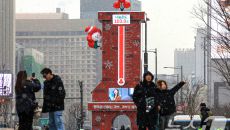 (서울=뉴스1) 이호윤 기자 = 12일 서울 종로구 광화문광장에서 외국인 관광객들이 사랑의 온도탑을 배경으로 사진을 찍고 있다- 2026-01-12 16:42