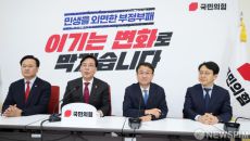 [서울=뉴스핌] 정일구 기자 = 송언석 국민의힘 원내대표가(왼쪽에서 두번째)가 12일 오후 서울 여의도 국회에서 한병도 더불어- 2026-01-12 16:15