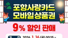 경북 포항시는 오는 16일부터 2026년 카드형·모바일 포항사랑상품권(이하 ‘포항사랑카드’)의 첫 할인 판매를 시작한다고 12- 2026-01-12 16:09