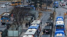 (서울=뉴스1) 이호윤 기자 = 서울시 시내버스 파업을 예고한 12일 서울 중구 서울역 환승센터에서 버스가 오가고 있다. 서울- 2026-01-12 15:59
