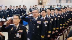 국기에 경례하는 경찰 간부들