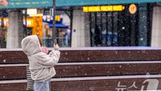 (서울=뉴스1) 이호윤 기자 = 눈이 내리는 12일 서울 광화문광장에서 외국인 관광객이 사진을 찍고 있다. 2026.1.12/- 2026-01-12 15:20