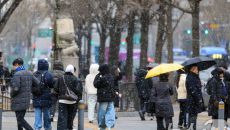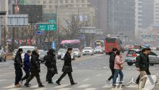 (서울=뉴스1) 이호윤 기자 = 눈이 내리는 12일 서울 세종대로사거리에서 시민들이 발걸음을 옮기고 있다. 2026.1.12/- 2026-01-12 15:20