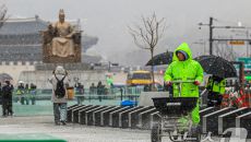 (서울=뉴스1) 이호윤 기자 = 눈이 내리는 12일 서울 광화문광장에서 작업자들이 염화칼슘을 뿌리고 있다. 2026.1.12/- 2026-01-12 15:20