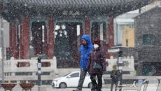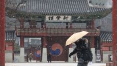 (수원=뉴스1) 김영운 기자 = 중부지방을 중심으로 눈이 내린 12일 경기 수원시 팔달구 화성행궁에서 시민들이 눈을 맞으며 걸- 2026-01-12 15:07